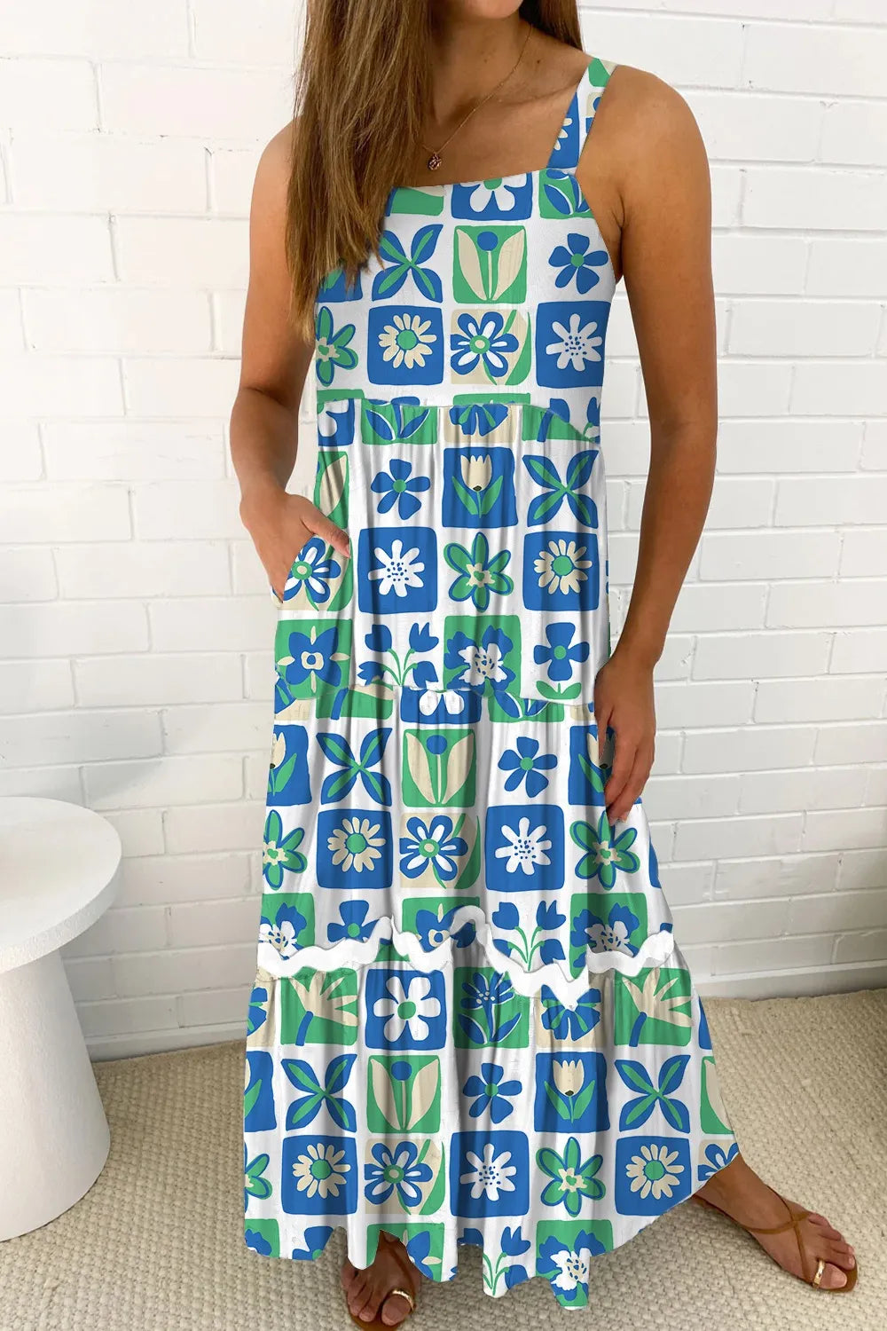 Velste Floral Mixed Pattern Ruffle Flutter Sleeve Buttoned Dress