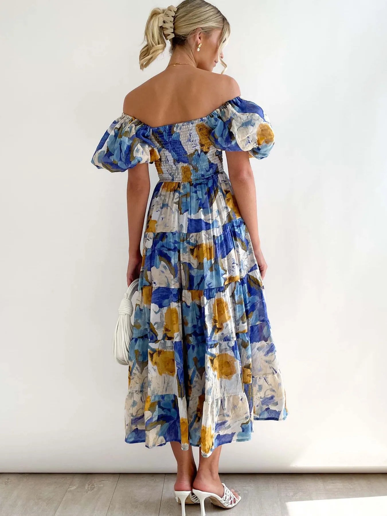 Velste Floral Smocked Puff Sleeve Tiered Dress
