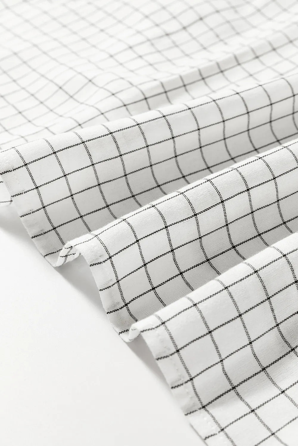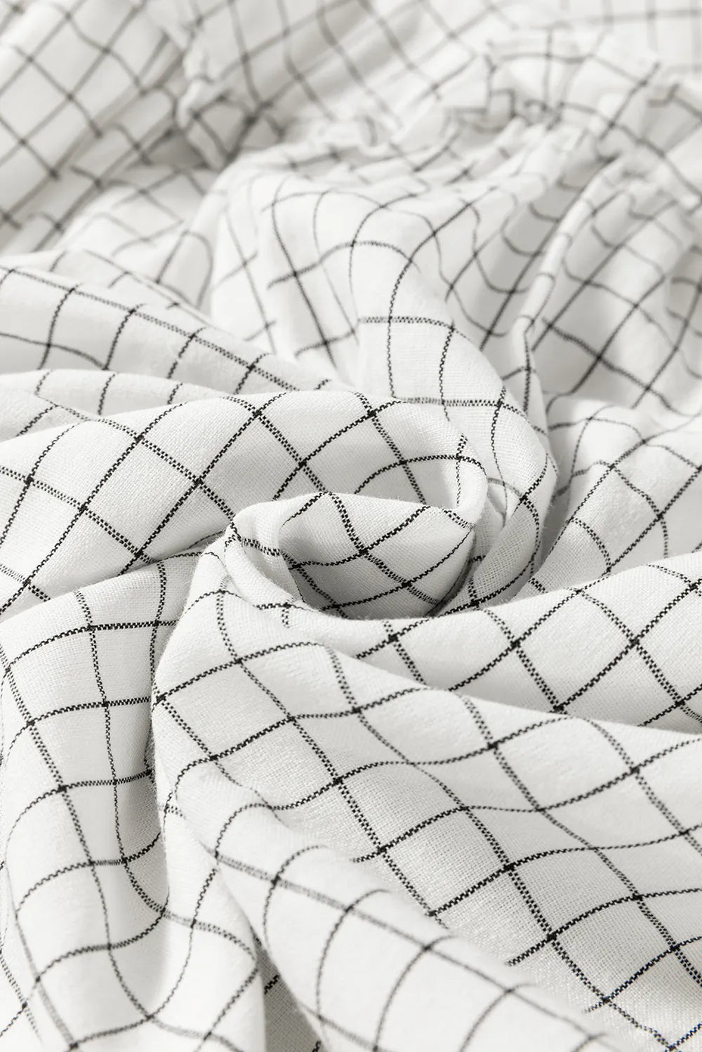 Velste Frill Plaid Notched Balloon Sleeve Mini Dress
