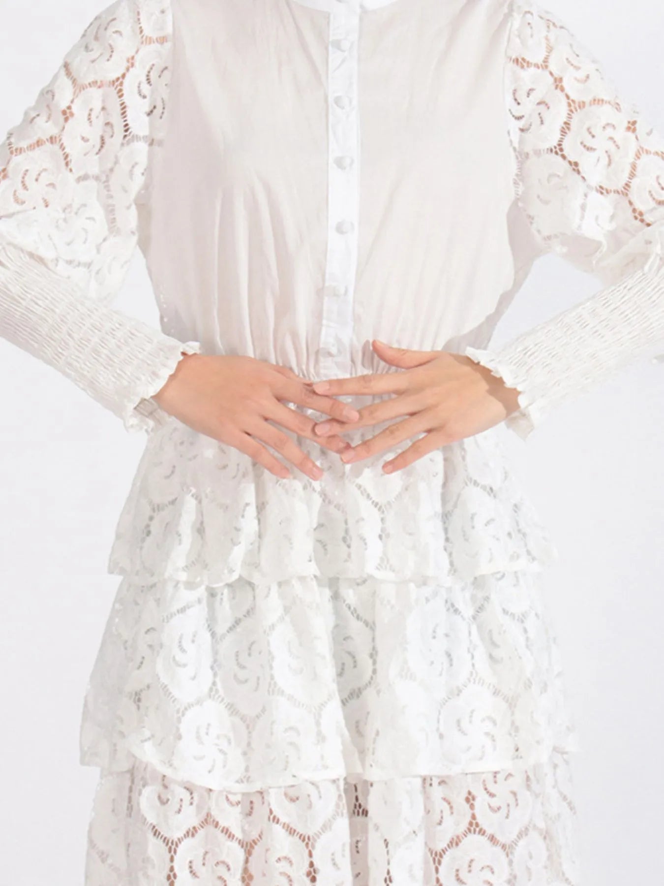 Velste Full Size Lace Layered Long Sleeve Dress Plus Size