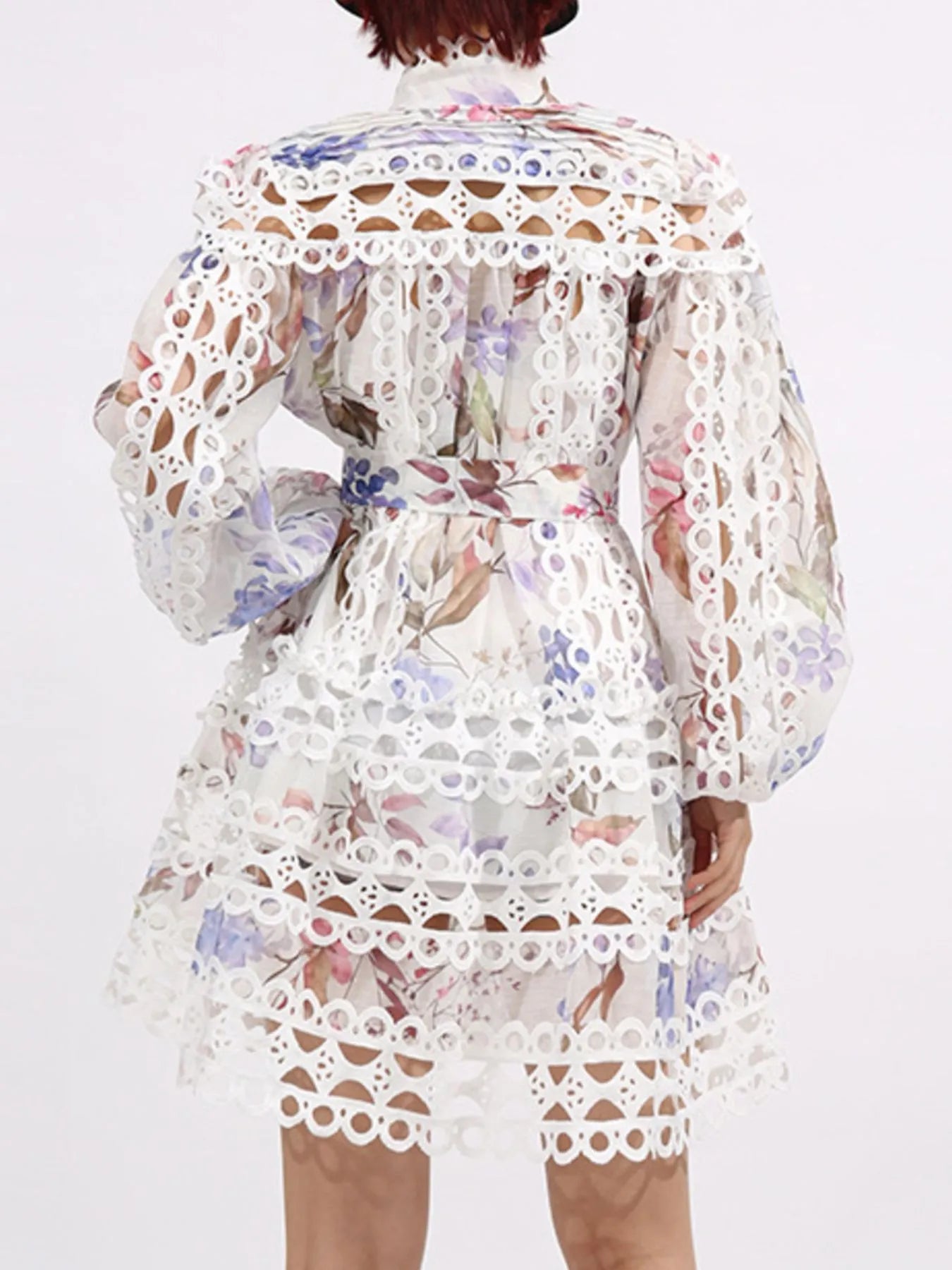 Lace Eyelet Mini Dress with Balloon Sleeves