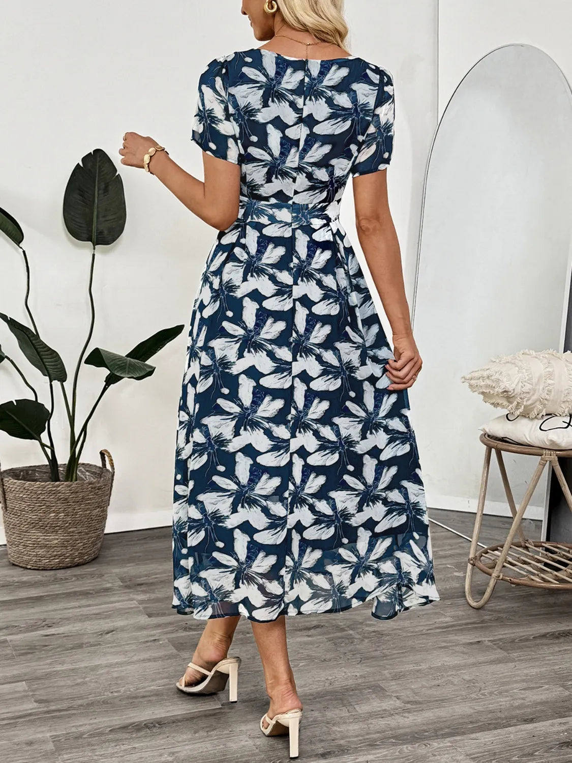 Velste Printed Square Neck Midi Dress