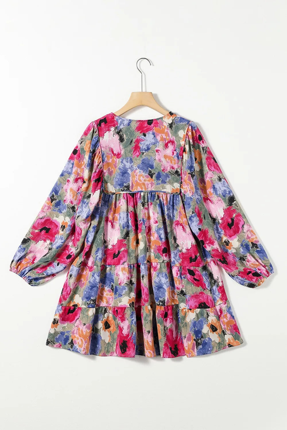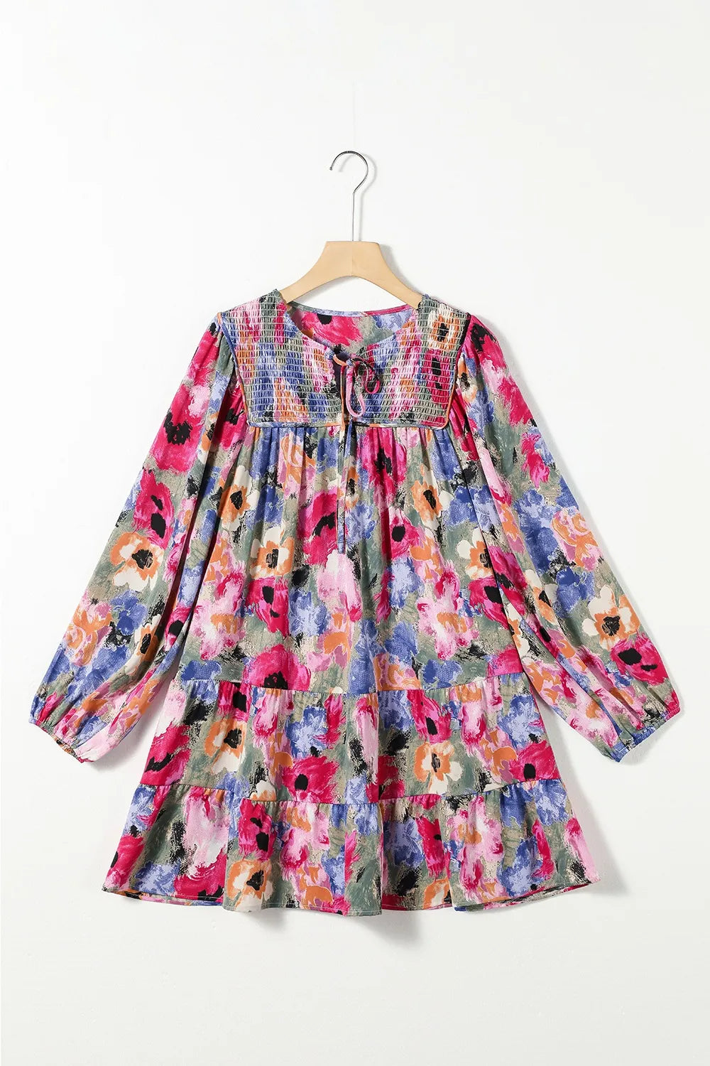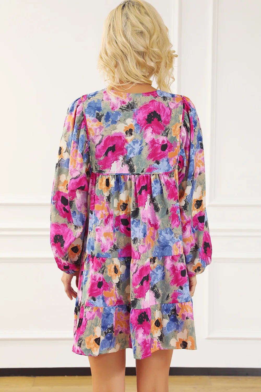 Velste Printed Tie Neck Long Sleeve Mini Dress
