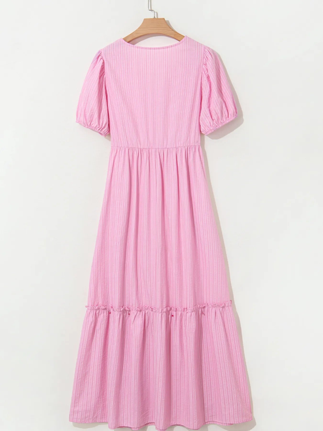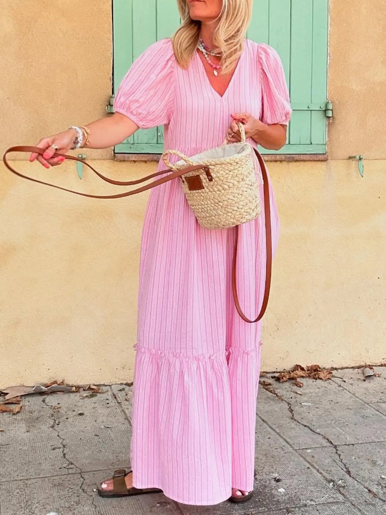 Striped Puff Sleeve V-Neck Maxi Dress