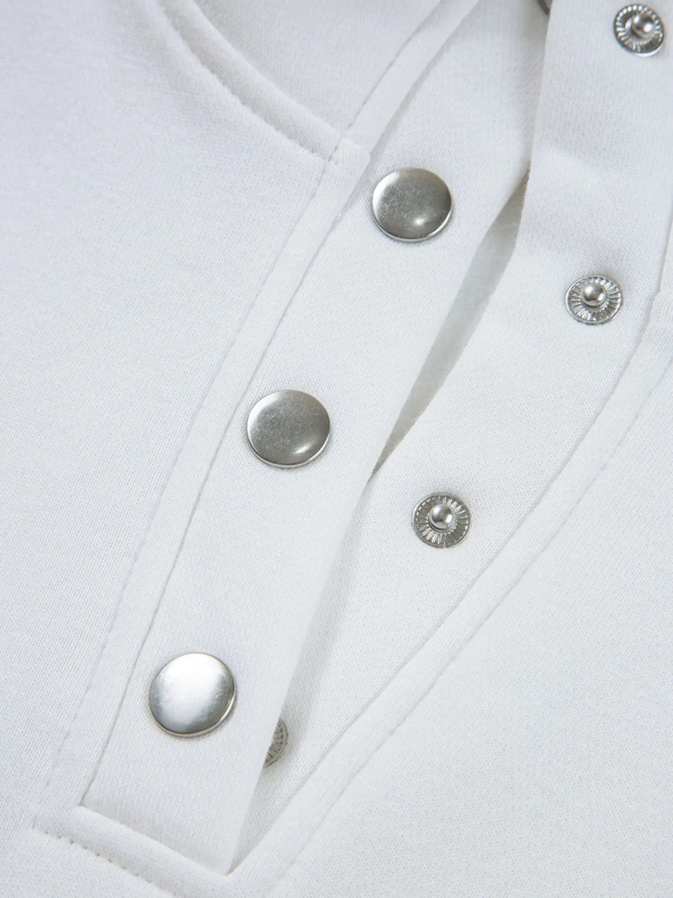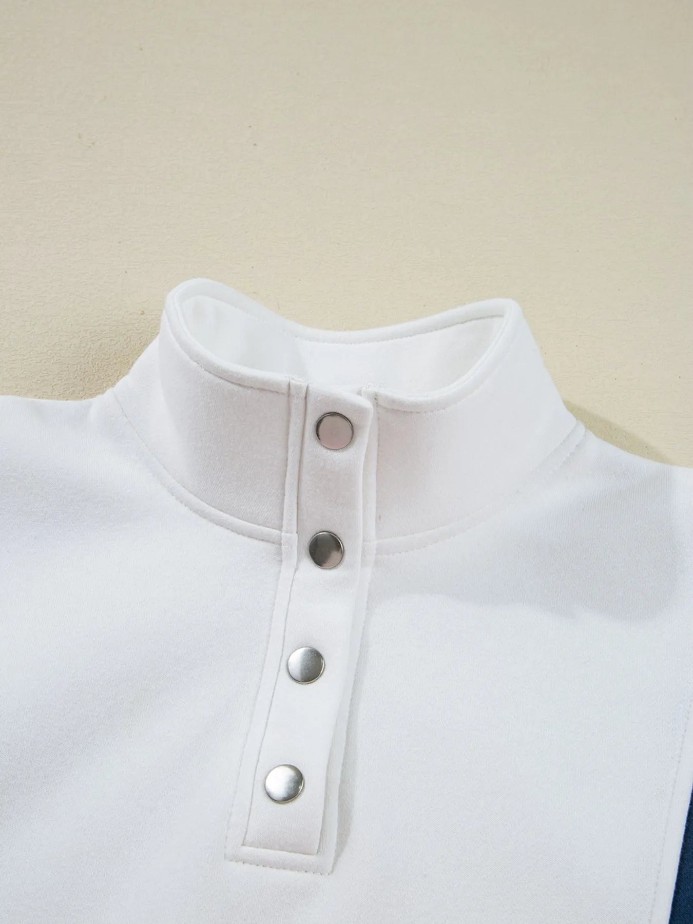 Colorblock Patchwork Half Button Baggy Sweatshirt