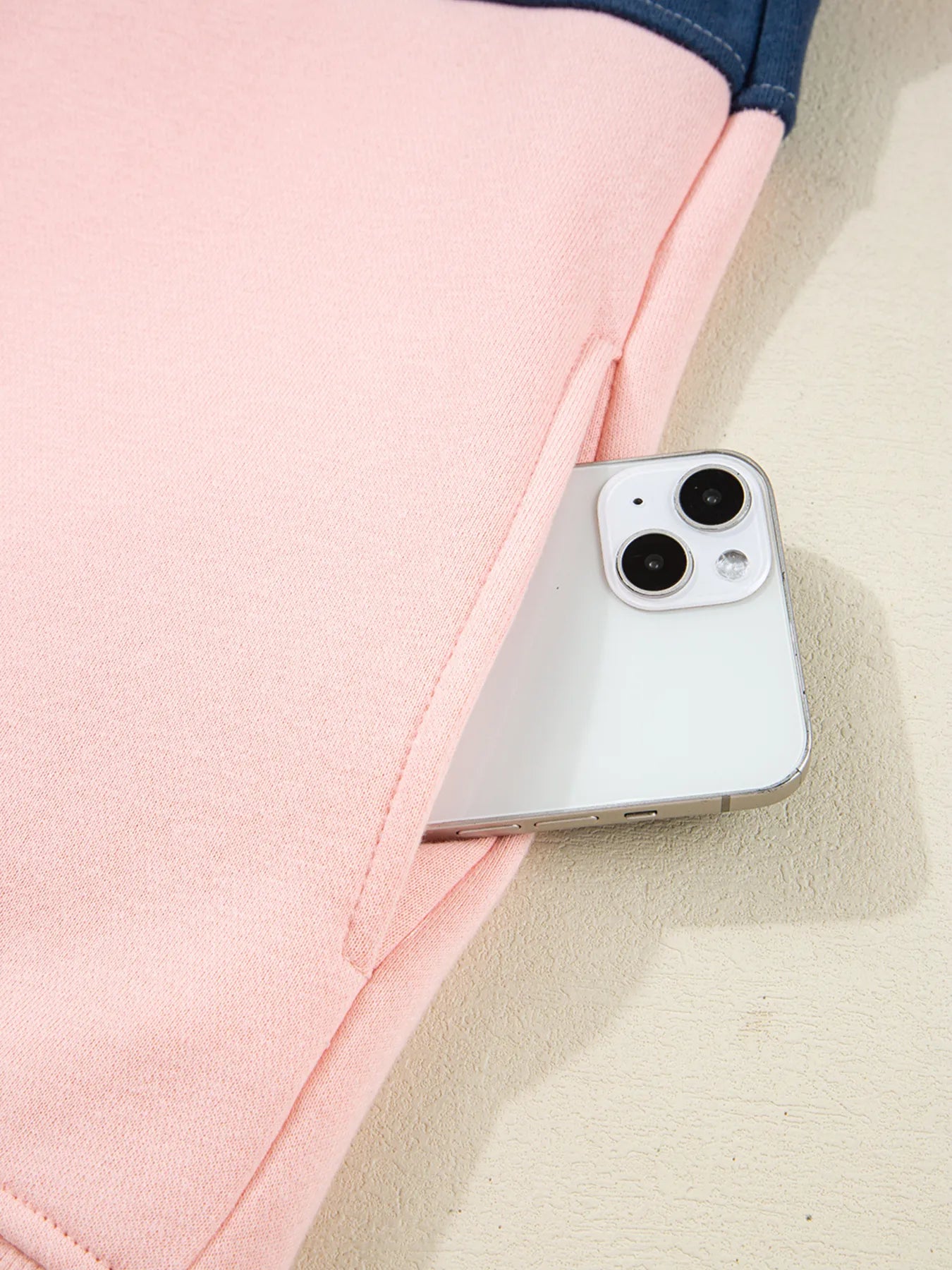 Velste Colorblock Patchwork Half Button Baggy Sweatshirt