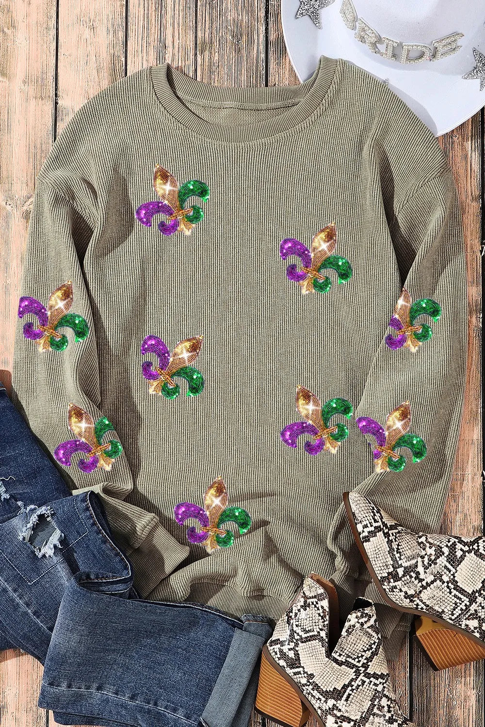 Velste Sequin Round Neck Dropped Shoulder Sweatshirt
