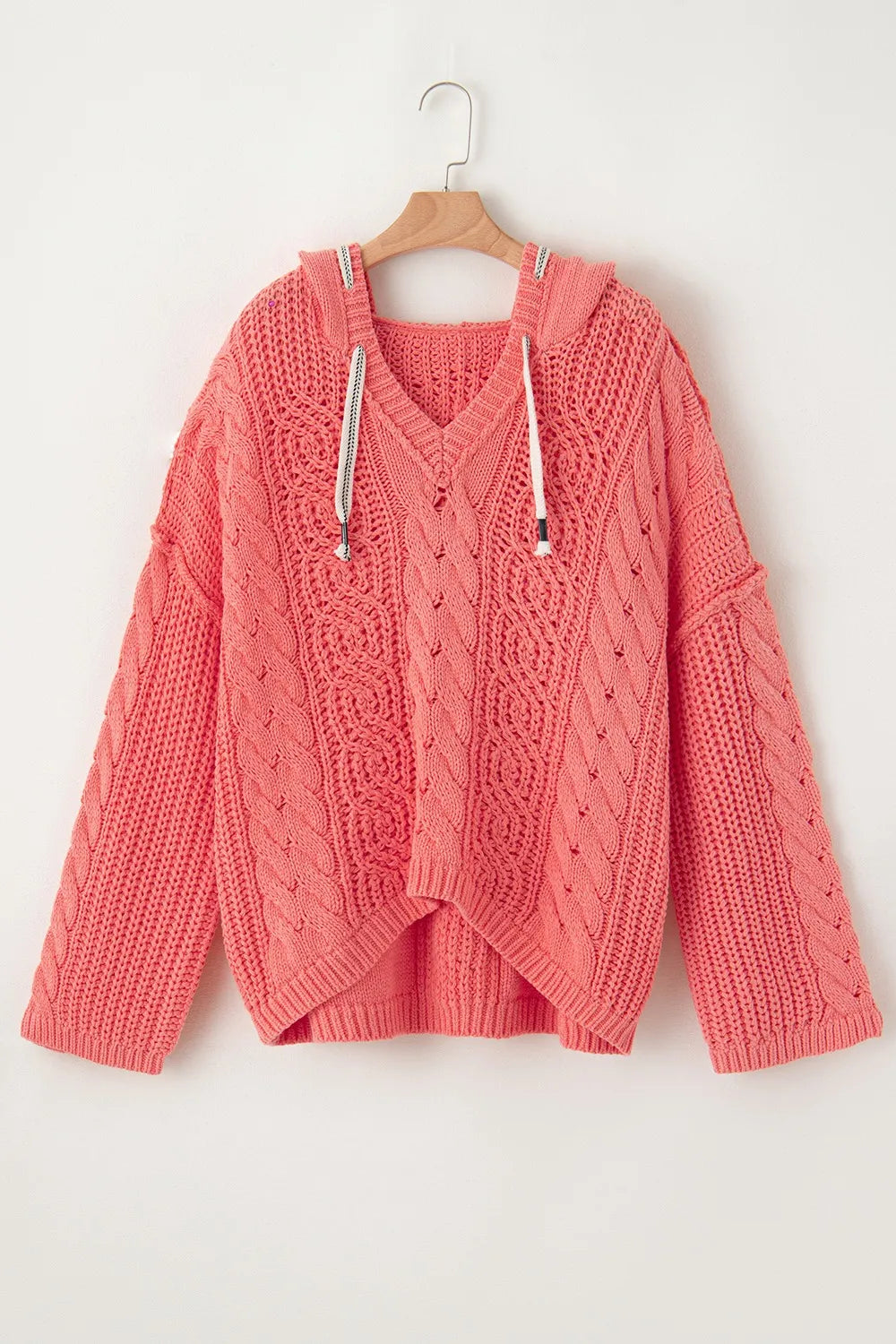 Velste Drawstring Cable-Knit Hooded Sweater
