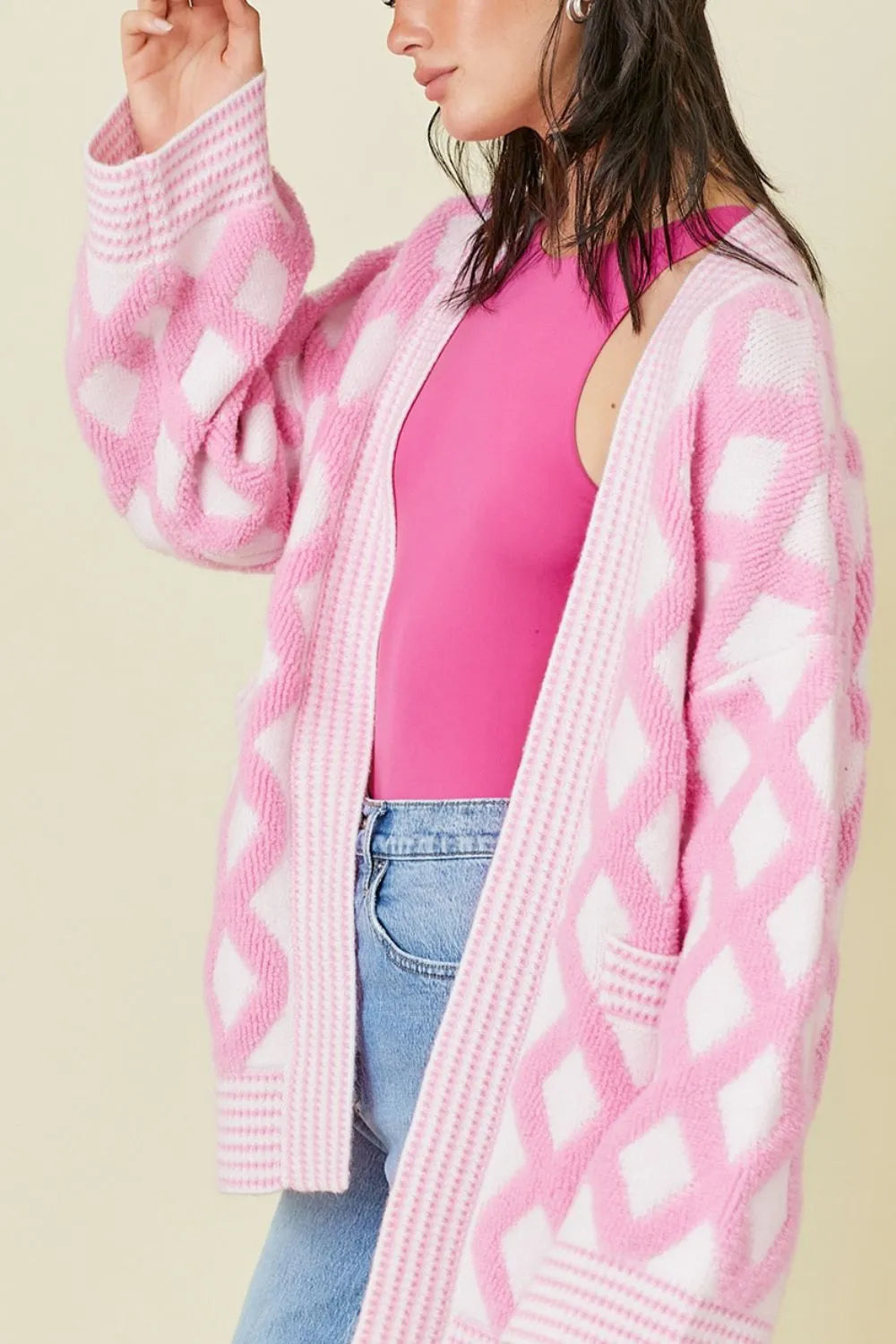 Velste Geometric Open Front Long Sleeve Cardigan