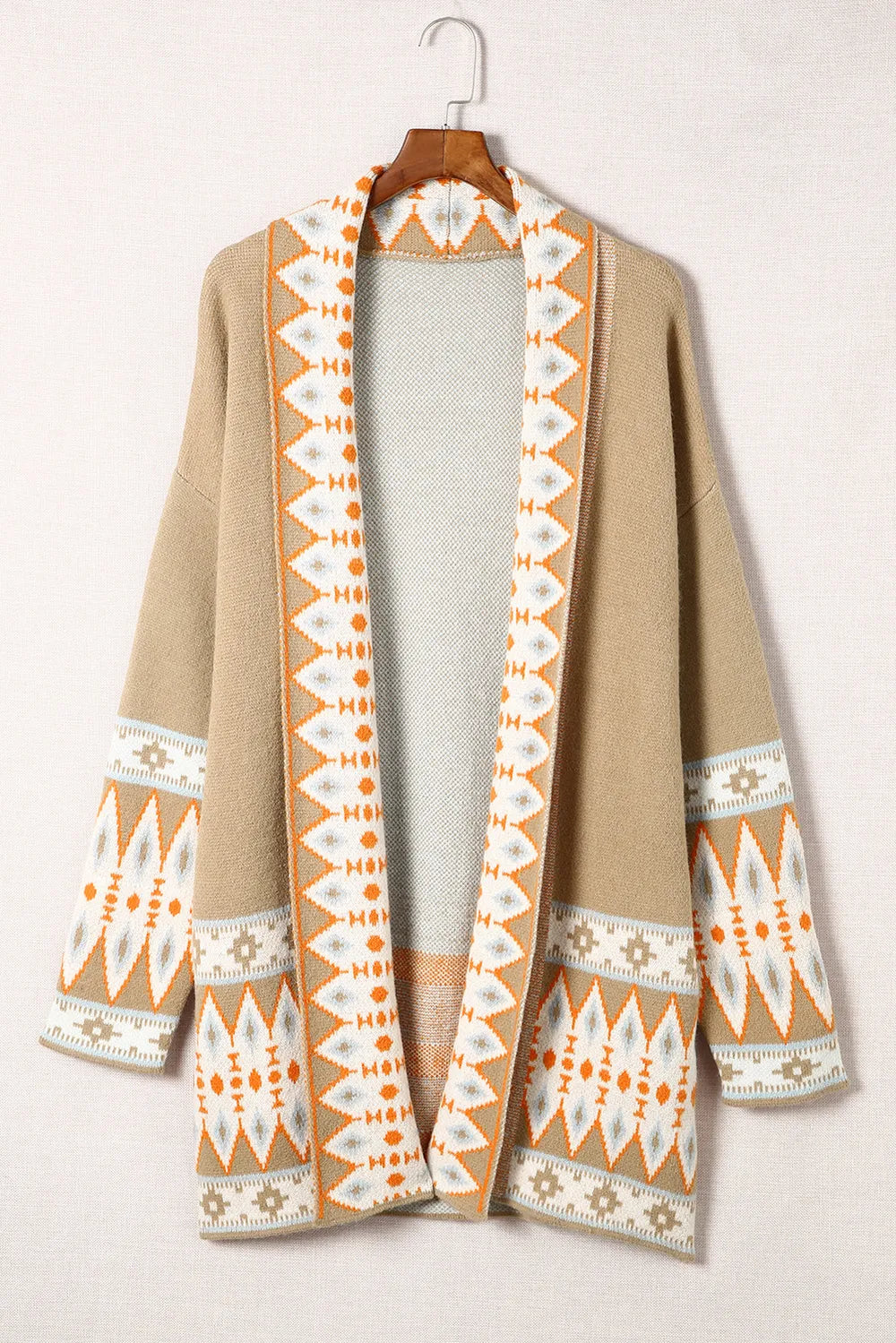 Velste Geometric Open Front Long Sleeve Cardigan