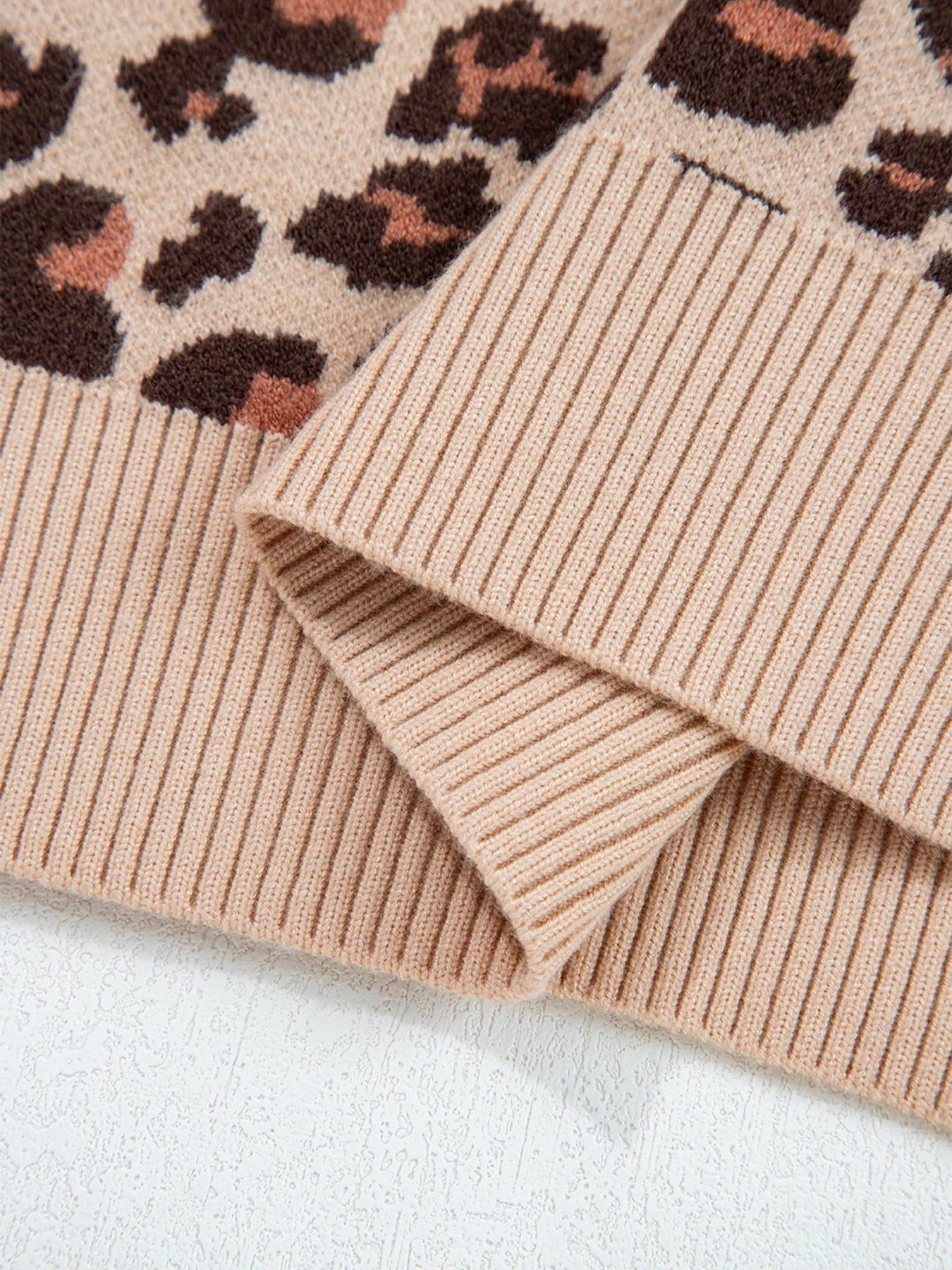 Velste Leopard Print High Neck Shift Mini Sweater Dress